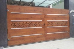 HPL Gate is a modern, stylish, and highly durable gate solution made from High Pressure Laminate (HPL) compact sheets. It is designed to withstand harsh outdoor conditions while providing superior aesthetics and long-lasting performance. Manufactured by compressing multiple layers of kraft paper and decorative surfaces under high pressure and temperature, HPL gates offer exceptional strength and structural stability.